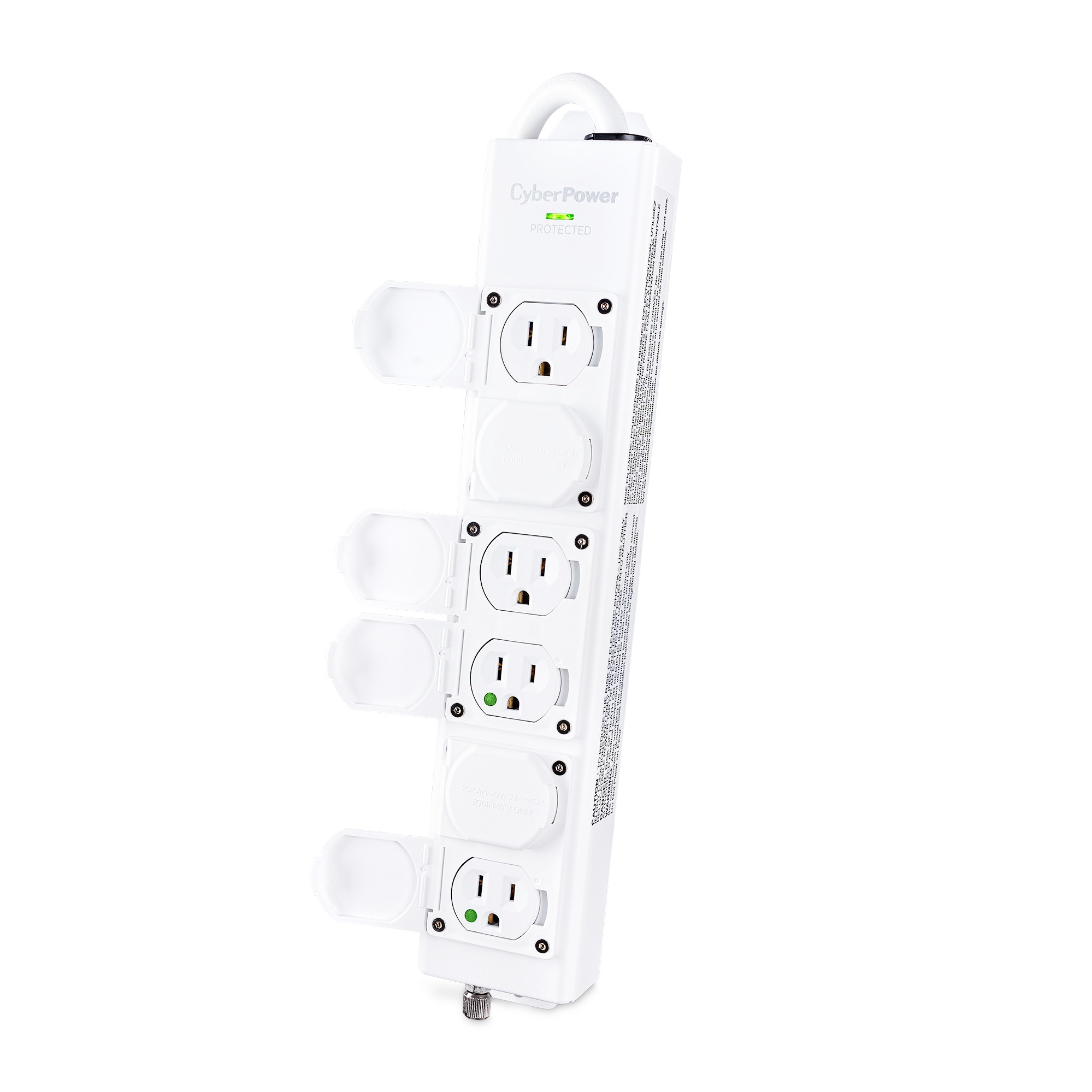 The CyberPower MPV615S Medical Grade Surge Protector delivers vital surge protection for use in hospitals, clinics, group practices, private practices, laboratory or other medical facilities, allowed for use within six feet of a patient for non-critical care applications. The surge protection prevents spikes in energy caused by storms and electrical power surges from reaching sensitive medical equipment in hospitals and healthcare facilities. Designed for use in patient care vicinities, the MPV615P is UL2930 listed.