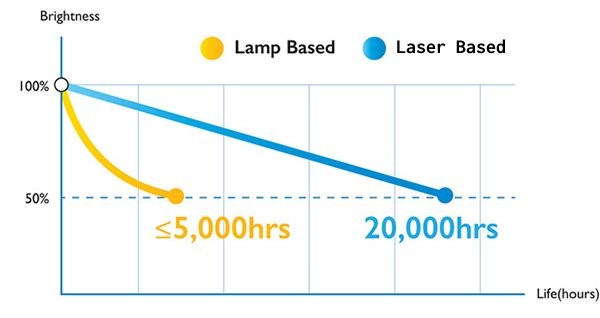 BenQ laser projectors deliver 20,000 hours of superior image quality and performance. The laser light source resists color decay over time, making BenQ laser projectors ideal for multiple blending projections without concern for adjacent projectors generating different levels of brightness after a period of operation.