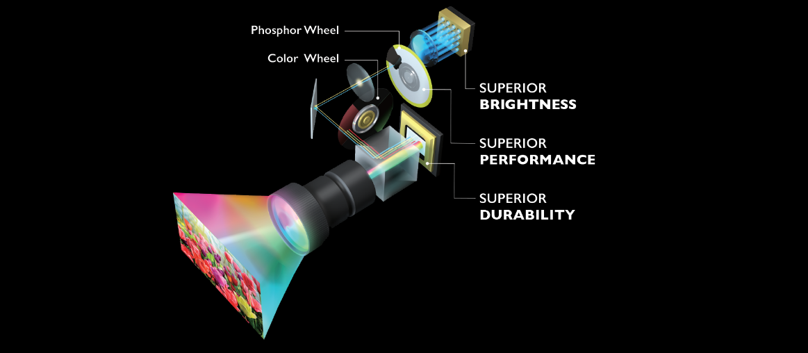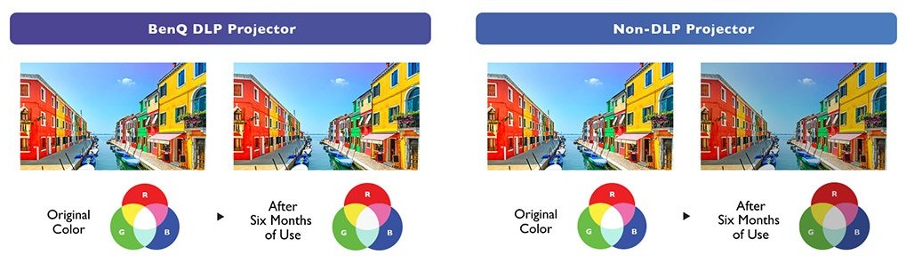 BenQ laser projectors are based on the absolute reliability of the 1-chip DLP design. The highly durable DLP chip can last over 20,000 hours without degradation, ensuring true-to-life colors and pristinely legible text over countless uses.