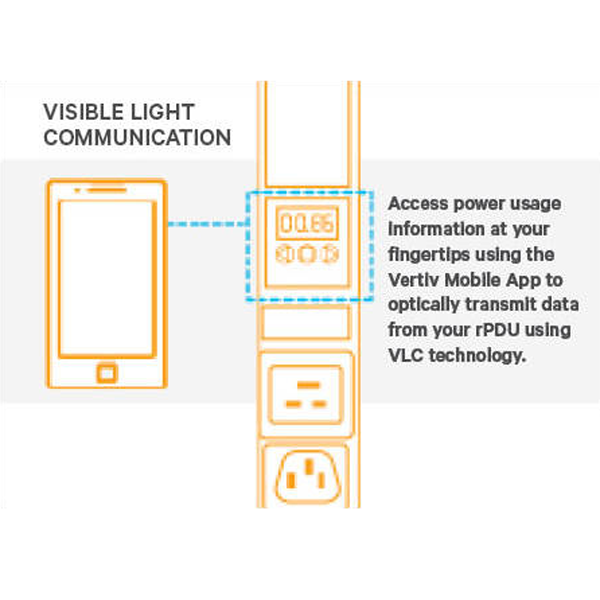 Visible Light Communication (VLC) Technology optically transmits information to your mobile device, providing instant and secure access to power usage data at the cabinet or rack. The data can be accessed using the rPDU Scanner Application.