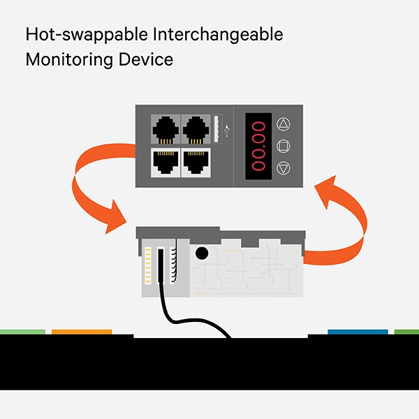 The hot-swappable Interchangeable Monitoring Device provides you with confidence that as technology advances you can easily update the intelligence on your Rack PDU to the latest technology available allowing you to seamlessly evolve with the growth of your operation.