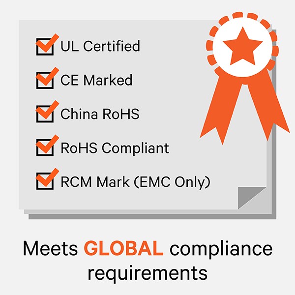 The Vertiv Geist Combination Outlet Rack PDU meets global requirements including RoHS, China RoHS, and UL Certification.