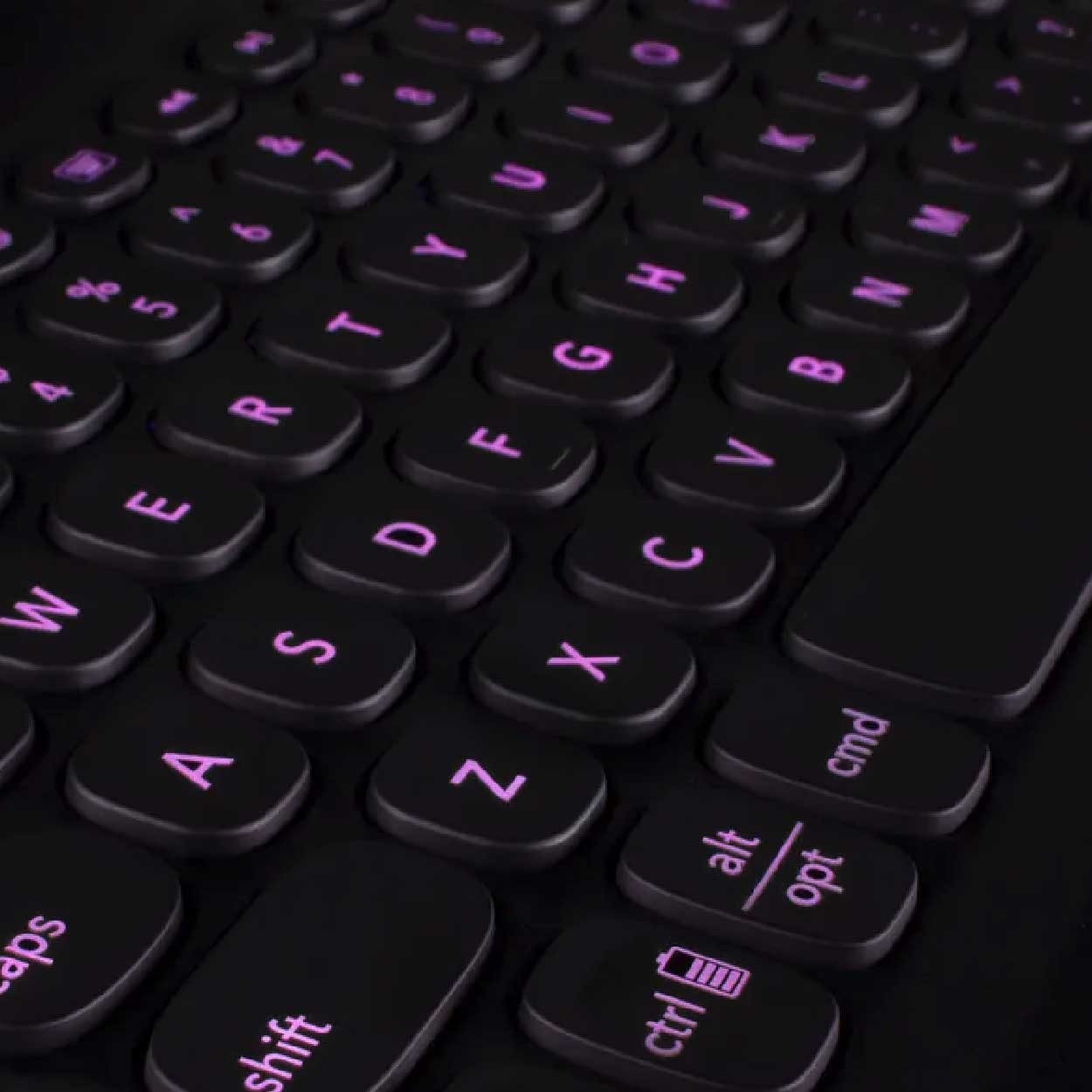 Type comfortably, even in low-light conditions, with laptop-style keys, backlit in seven different colors.