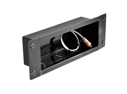 With the IBA3 Recessed Cable and Storage Management Box from Peerless-AV, cables and cords become virtually invisible. When combined with a Peerless-AV mount, the In-wall accessory box provides the perfect behind-the-display solution to conceal unsightly power and low-voltage cables like HDMI or RCA behind flat panel displays, audio components or other devices. Complete with a receptacle knock-out for adding a duplex power module (not included), the IBA3 creates a professional look in any setting.