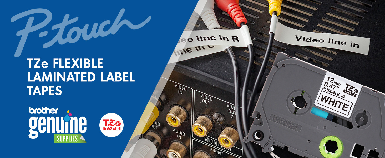 Brother Genuine P-touch TZe-FX231 adhesive flexible ID laminated label tapes are a breakthrough in labeling. Their extraordinary adhesive properties make them ideal for the toughest labeling tasks, and sticks to itself and to laminate for wrapping around items such as cables, PVC piping, and more.