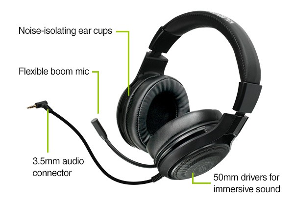NUKLEUS is designed to deliver the core features needed to destroy your gaming competition. The headset features large 50mm drivers inside noise-isolating ear cups for deep, immersive sound. NUKLEUS also includes built-in volume control, a flexible boom mic, and a universal 3.5mm audio connector making it compatible with PS4, Xbox One*, PC/Mac and mobile devices.