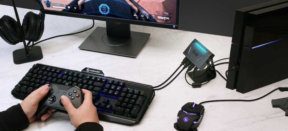 The KeyMander® 2 Complete Performance Bundle has everything needed to get you started gaming with a keyboard and mouse on your Xbox One, Xbox 360, PS4, PS3 or Nintendo Switch game console. The bundle includes the KeyMander 2 – Keyboard & Mouse Adapter plus Controller Crossover and the Kaliber Gaming™ RGB Gaming Bundle, making it even easier to start racking up the wins during online gameplay!
