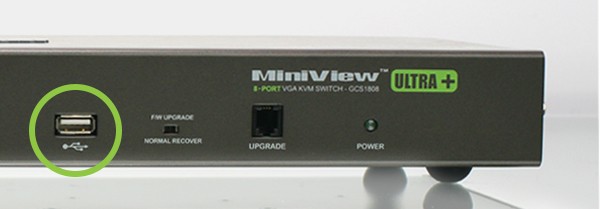 The KVM switch includes a single USB port located on the front panel for quick system access for upgrades and shared peripherals. Setup is fast and easy; plug the cables into their appropriate ports and you're ready to work. The switch supports both USB and PS/2 connections for both the console and computers. The switch intercepts the keyboard input directly, eliminating the need for software configuration.