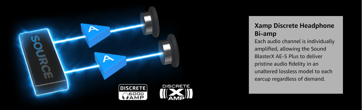 The Sound BlasterX AE-5 Plus is a SABRE32 Ultra-class PCI-e DAC which is perfect for hi-resolution audio for games, music, and movies. It delivers up to 32-bit / 384 kHz playback* with a 122 dB DNR, ultra-low distortion and jitter.