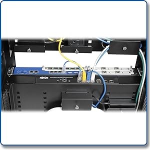 The reversible front door locks securely with a built-in combination lock to help prevent damage, tampering or theft. The vented cabinet ensures a constant flow of air that cools equipment and helps prevent overheating that can lead to costly downtime. Brush-strip cable plates on both sides allow easy cable routing while preventing dust from entering. The SRWF10UMOD provides physical equipment and media security required for PCI DSS (Payment Card Industry Data Security Standard) compliance.