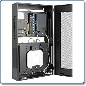 Tripp Lite’s SRWF10UMOD secures both regular rack equipment and other devices not typically mounted in an EIA-standard 19-inch rack. It’s recommended for areas with limited floor space where you need equipment to be secure, organized and out of the way. Constructed from heavy-duty steel with a durable black powder-coated finish, the cabinet has a maximum load capacity of 150 pounds. It comes fully assembled and ready for wall mounting.