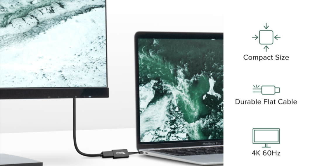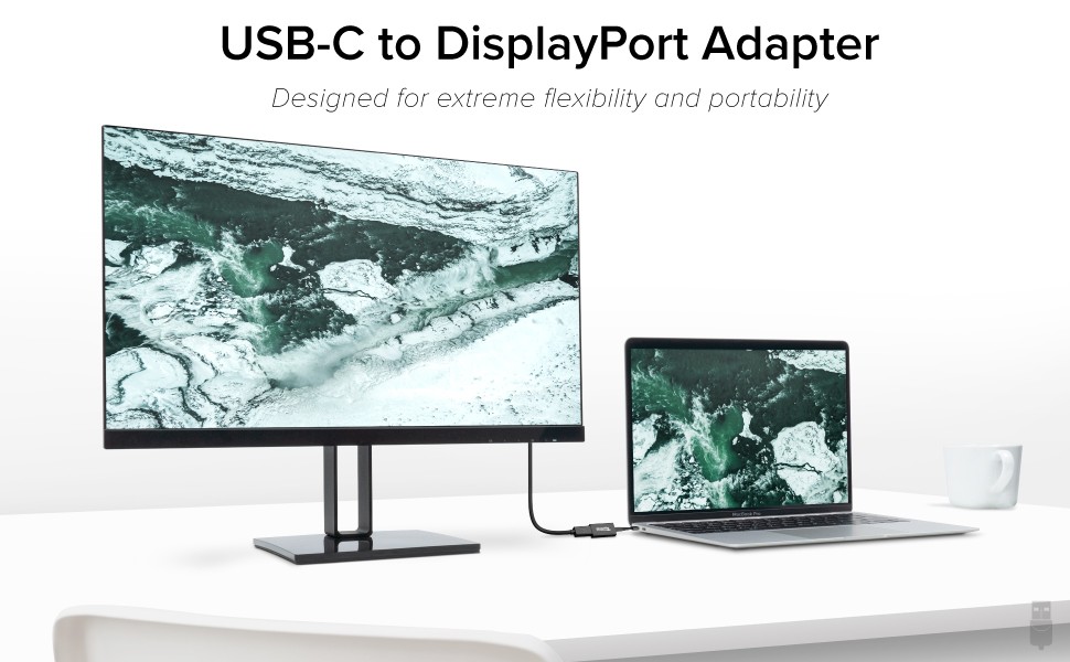 This compact adapter is under 2 inches in size, making it perfect for travel and taking on the go. Featuring a unique flat cable design, you can forget about messy cables and take advantage of the tight bend radius, which allows the adapter to fit in confined and compact spaces. The adapter enables a DisplayPort output at resolutions up to 3840x2160 @ 60Hz (4K 60Hz) from systems which support “DisplayPort Alternate Mode” (Alt Mode) via USB-C.