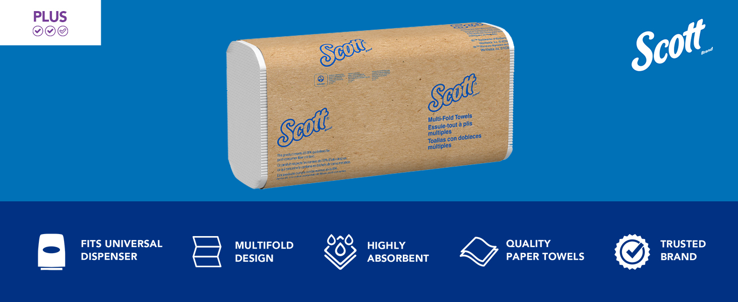 Scott® provides reliable balance of efficiency, performance and value. Whether you need commercial paper towels for your office kitchen or restroom, Scott® Multifold Paper Towels are an excellent—and economical—choice. These commercial paper towels feature Absorbency Pockets™ that absorb a lot of water fast, for superior hand drying. They're designed to reduce waste in your office or business, since they fit into any universal dispenser for trifold paper towels or multifold towels (which helps control over use). Since these Scott® folded paper towels meet EPA guidelines for minimum post-consumer waste content and are FSC® and ECOLOGO® certified, you know they're great choice.