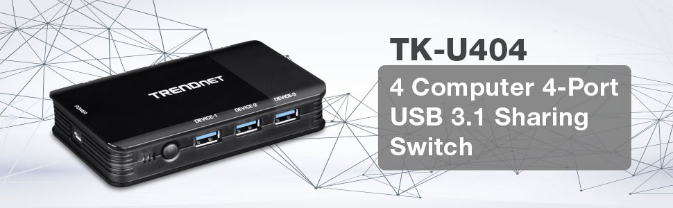 TRENDnet's Multi-Computer 4-Port USB 3.1 Sharing Switches each feature a switchable 4-port USB 3.1 hub that you can share between multiple computers. These USB switches are easy to install – simply plug in your mouse, keyboard, flash drives, or scanners, and then share those devices with multiple computers. The 4-port USB 3.1 share switches support a wide variety of USB peripherals with USB 3.0, 2.0, and 1.1 backwards compatibility.