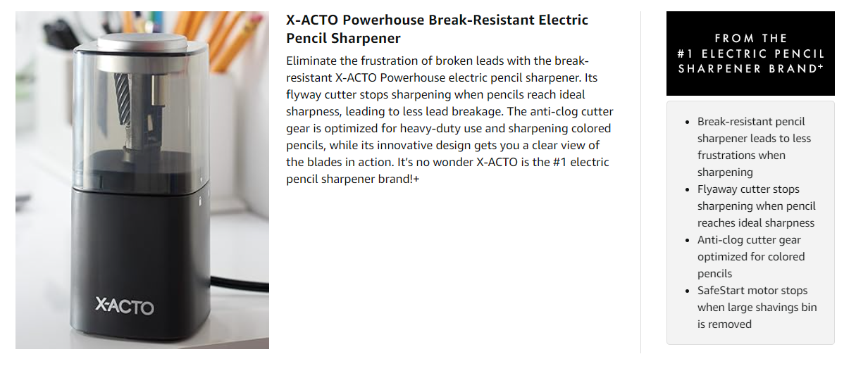 With a flyaway cutter that sharpens woodcase pencils to their ideal sharpness, the Powerhouse makes lead break resistant.