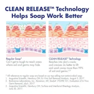 - CLEAN RELEASE™ Technology reaches into skin's cracks and crevices 2X better than regular soap to remove dirt and germs