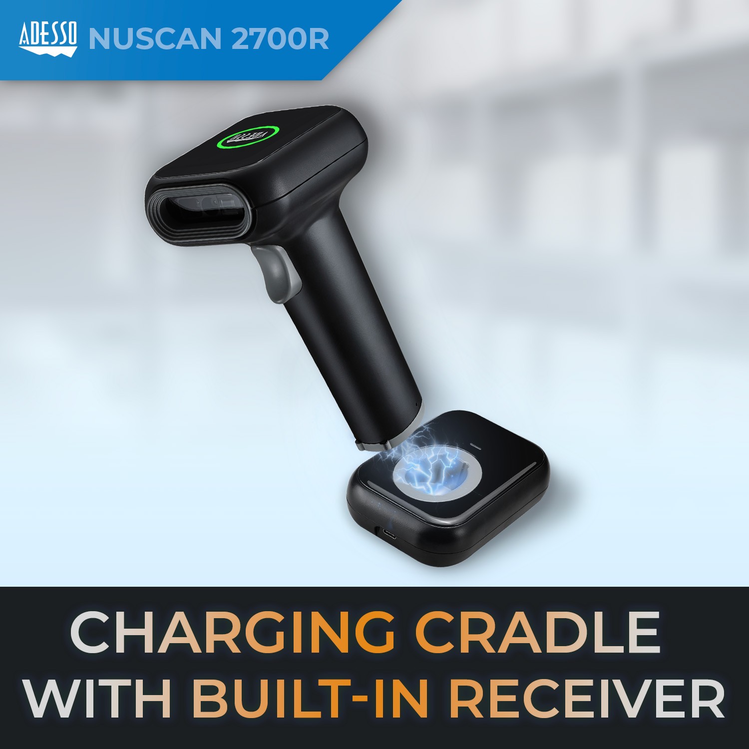 The charging cradle allows for hands-free scans and charges the scanner simultaneously. Its built-in USB receiver also makes the scanner completely Plug-n-Play!