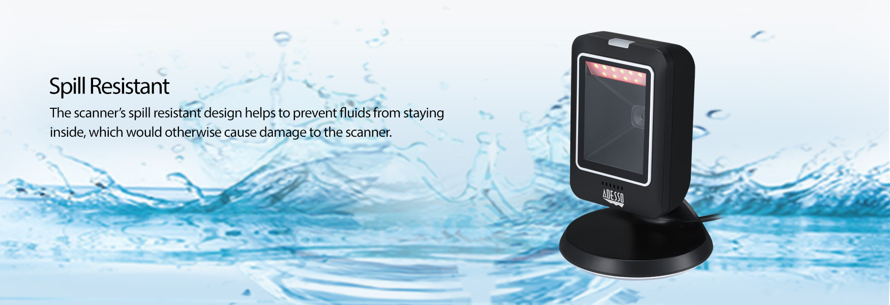 The scanner’s spill resistant design helps to prevent fluids from staying inside, which would otherwise cause damage to the scanner.