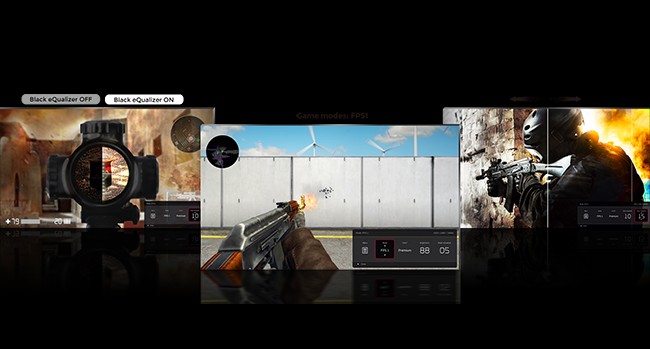 Black eQualizer to increase visibility in dark scenes without overexposing the bright areas, Color Vibrance to adjust color setting and tone to differentiate enemy targets in-game, and Game modes to switch between presets for different game titles.