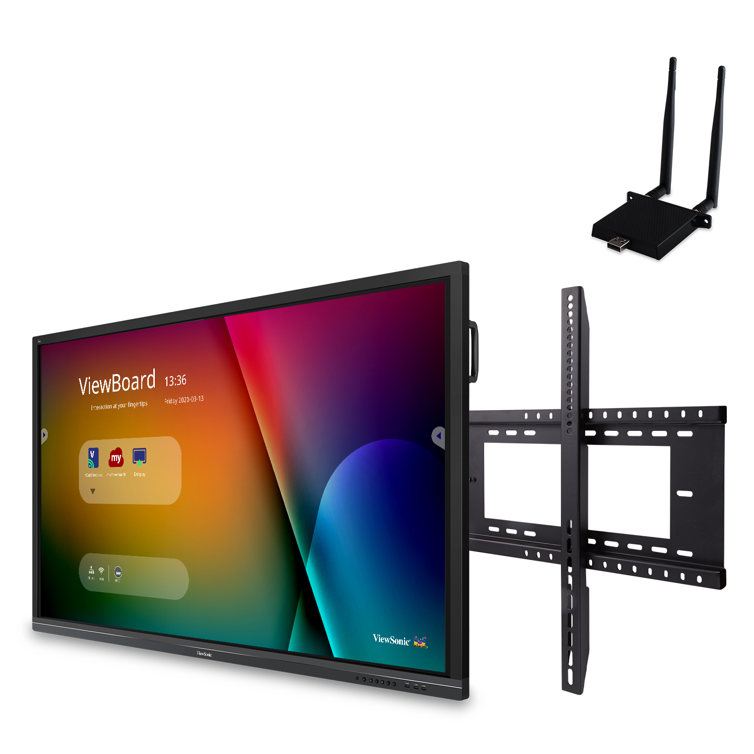 Ideal for education environments, this all-in-one ViewBoard Bundle includes a 75” ViewBoard IFP7550 4K interactive flat panel, a wireless AC adapter, and a WMK-047-2 wall mount.
