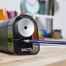 The X-ACTO line of electric pencil sharpeners feature modern materials, finishes, and textures for a sleek and professional appearance.