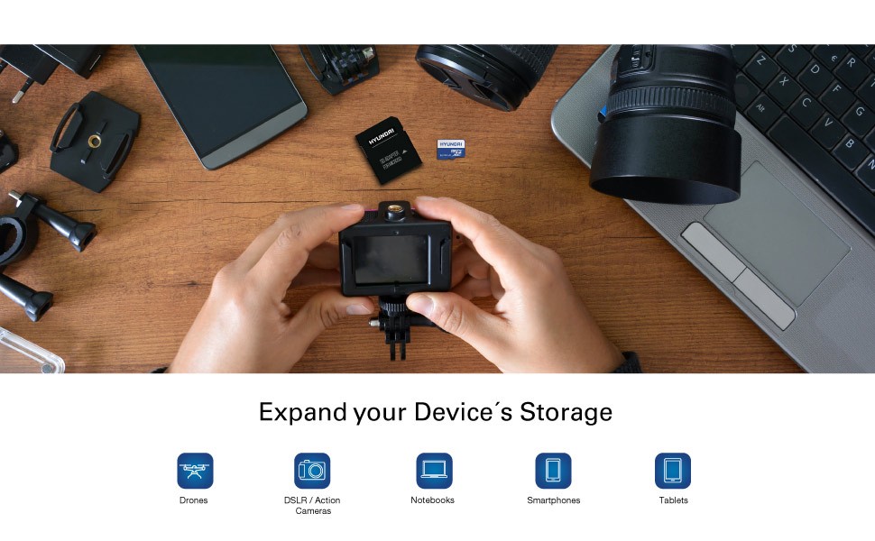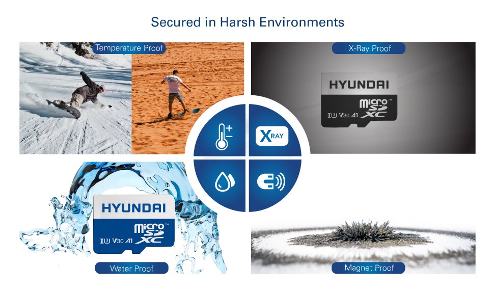 Our Hyundai U3, V30 and A1 microSDXC cards allow you to quickly transfer and easily share your content anytime.