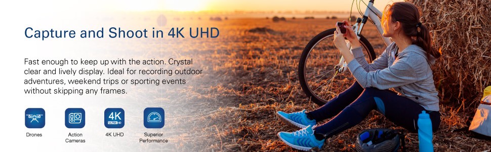 High compatibility for different types of devices including smartphones, tablets, Drones, Android Tablets, Tablet PCs, Action Cameras, DSLR and 4K or Full HD camcorder. Record and shoot faster with C10, U3 and V30.