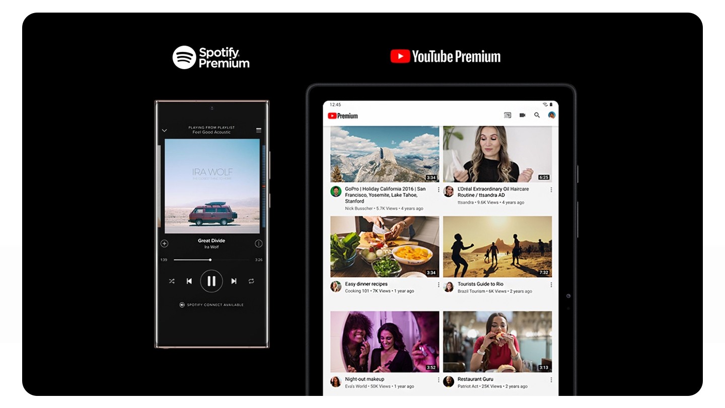 With purchase of Galaxy Tab A7, get two months of free YouTube Premium and six months of free Spotify Premium.