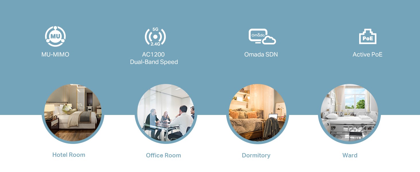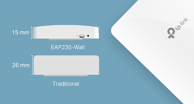 The thinnest wall plate AP available – only 15 mm – featuring a sleek, minimalistic appearance. Designed to blend in with the décor of hotel rooms, hospitals, offices, and school dormitories, EAP235-Wall delivers powerful WiFi without clashing with the room.
