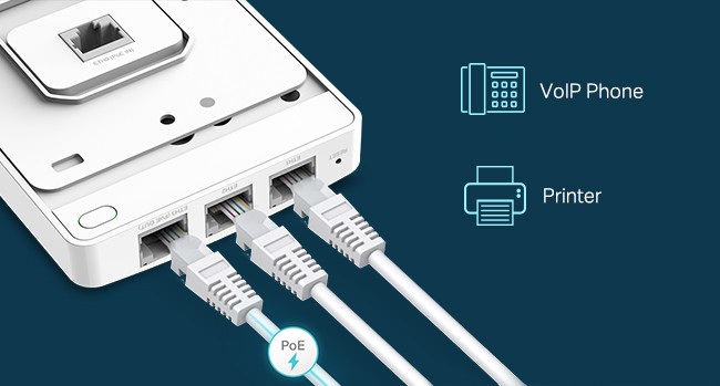 Equipped with four Gigabit data ports (1x uplink + 3x downlink) and one downlink port with PoE pass-through to connect multiple devices to your gigabit network. Wired devices like VoIP phones can be powered with no need for extra electrical cables.