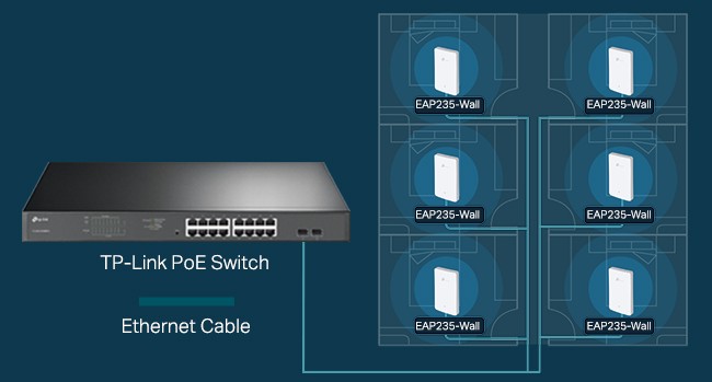 EAP235-Wall provides boosted WiFi speeds up to 1200 Mbps with Beamforming. Experience long-range coverage with advanced wireless technologies like Load Balancing and Band Steering optimizing the whole network to improve performance and efficiency.