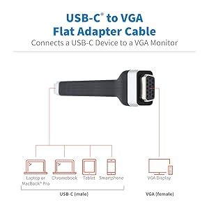 Newer tablets, laptops, Chromebooks, MacBooks, tablets and even smartphones often only have USB Type-C ports for connection to peripherals. The U444-F5N-VGA directly connects a USB-C or Thunderbolt 3 port on such a device to a VGA monitor, projector or television.