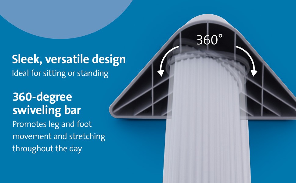 With its comfortable, stable support, 300-pound (136kg) weight limit, and 360-degree swiveling bar, the Rocking Foot Rest delivers ergonomics and promotes movement and stretching while sitting or standing. Strong, non-slip extruded rotating aluminum bar helps to improve circulation and relieve pressure for better health and all-day comfort.