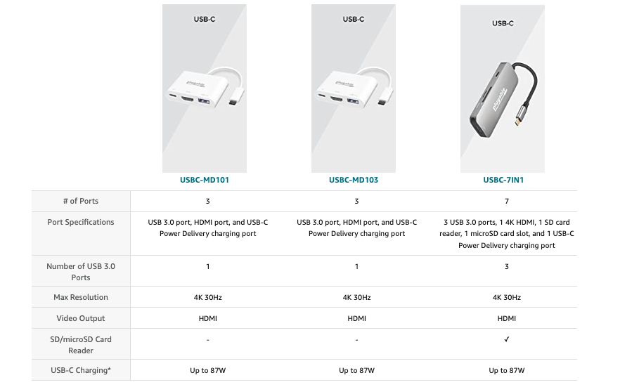 Keep your laptop or tablet charged with the USB-C charging port. Supports USB-C power delivery input and can charge supported systems up to 60W.