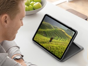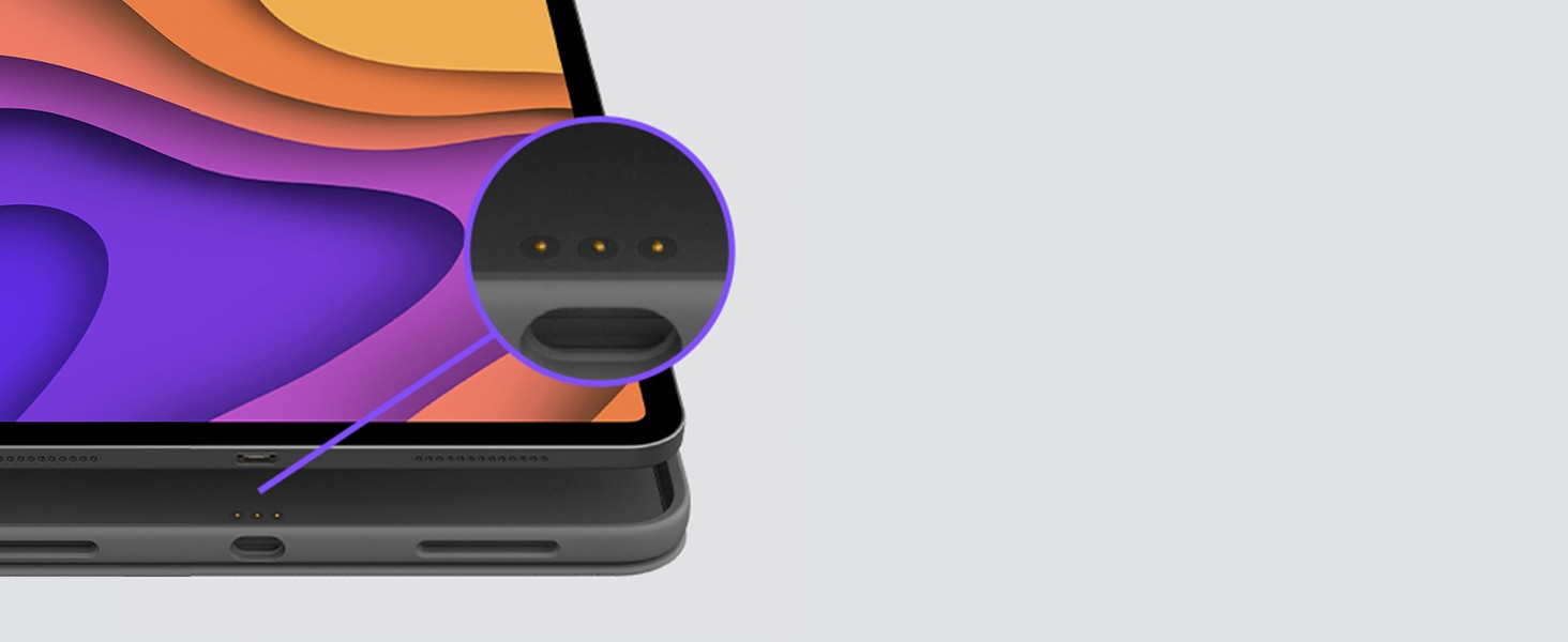 Type quickly and accurately in comfort with a familiar laptop-like keyboard featuring large, well-spaced keys and a full row of iPadOS shortcut keys.