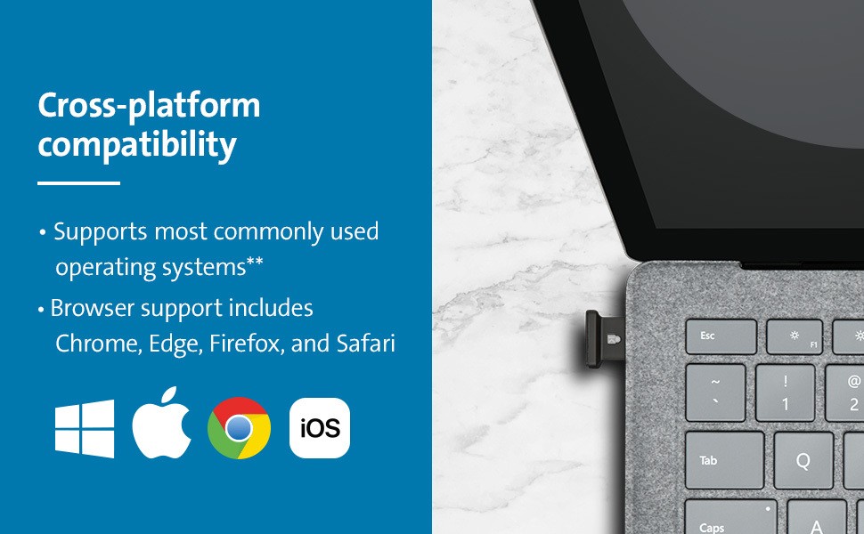 *Cross-platform compatibility for macOS and ChromeOS is supported via our Tap-and-Go feature. For a complete list of authentication services visit VeriMark™ support site.