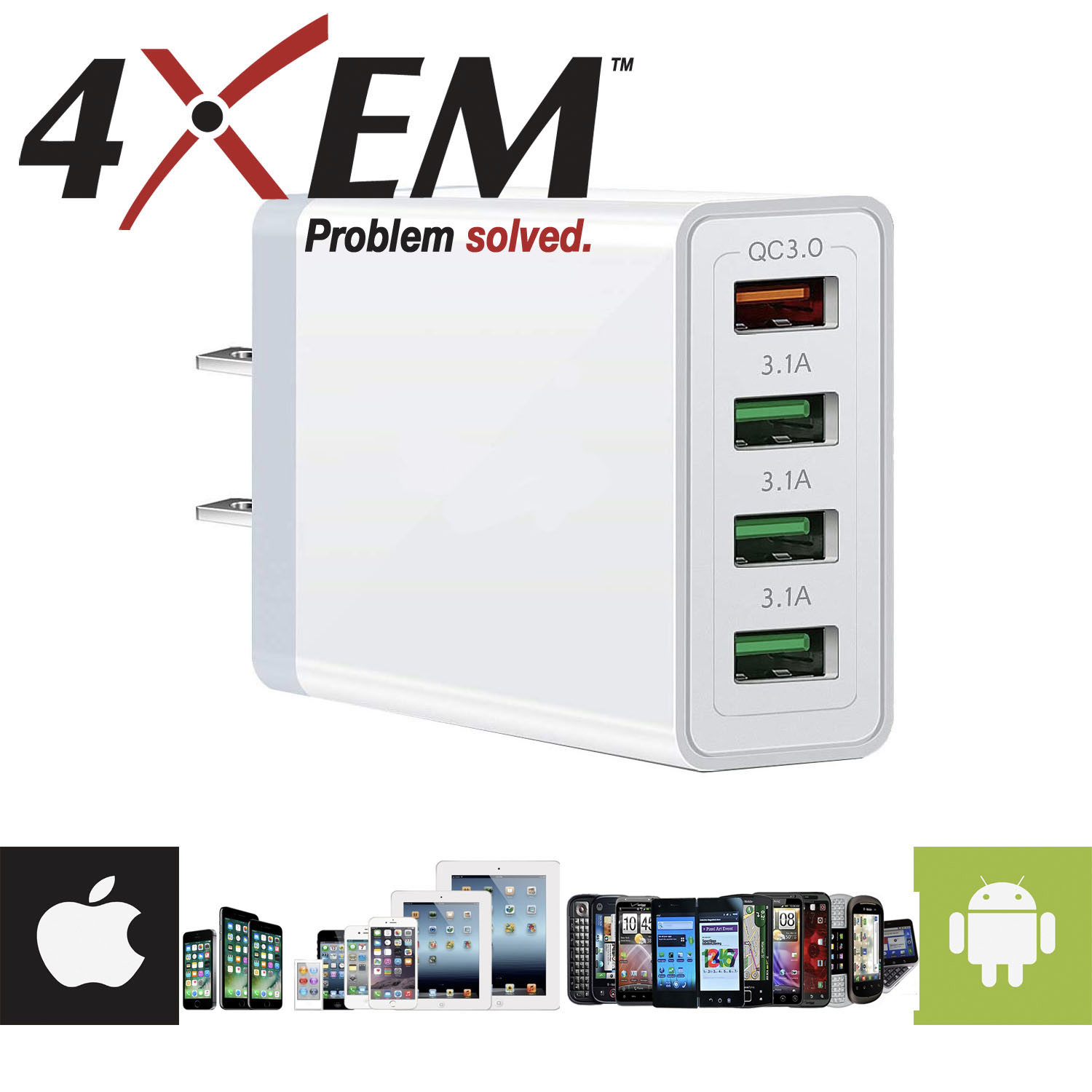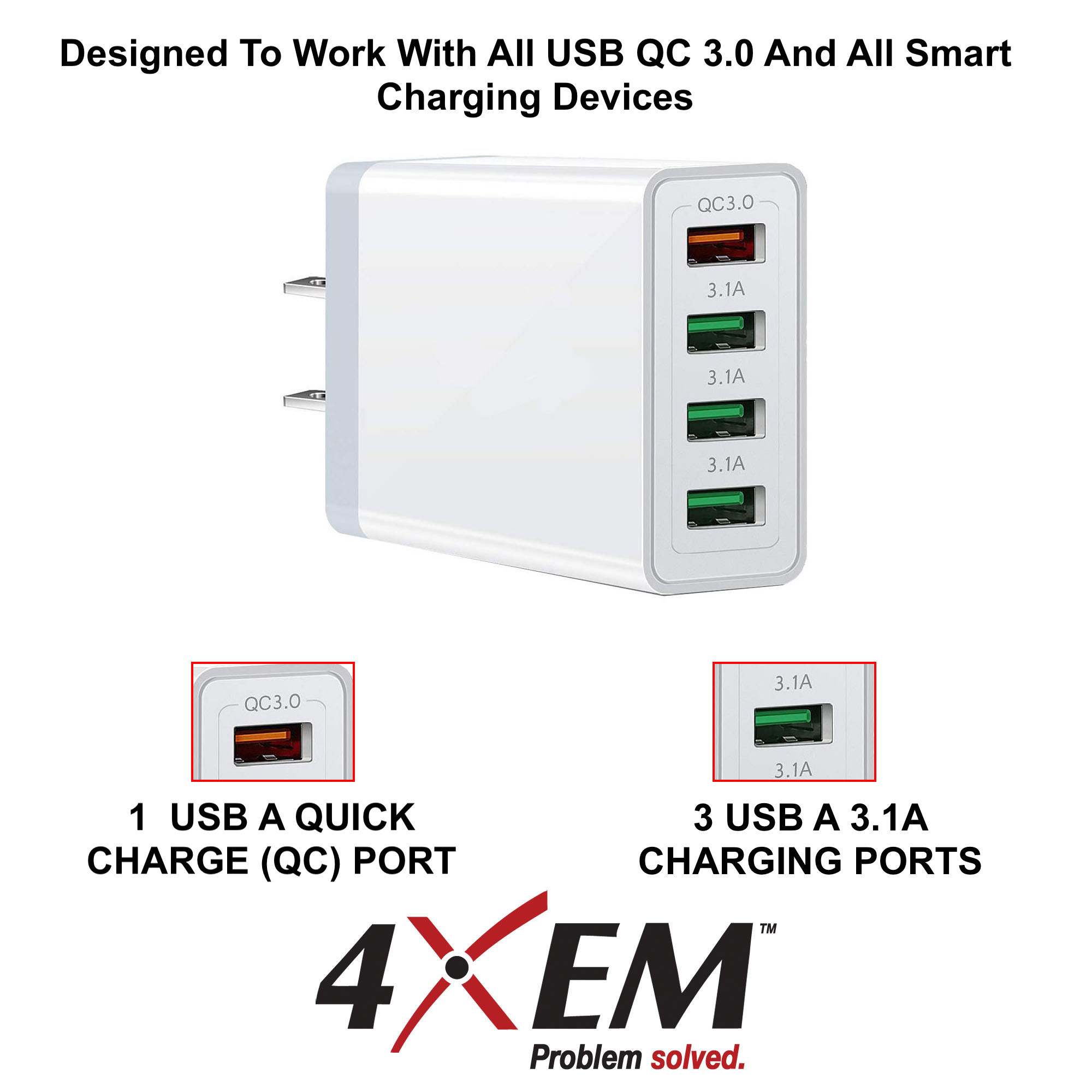 4XEM’s 4-Port USB Charger Adapter comes with 3 USB charging ports and 1 Quick Charge (QC) port. This fast charging device goes even farther by incorporating the QC 3.0 technology to offer that fastest possible charge for your device.