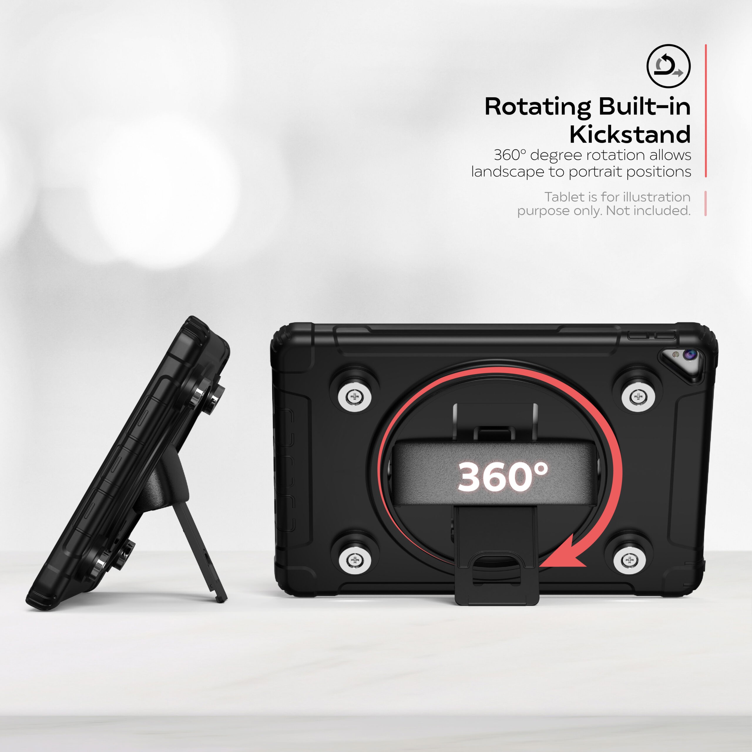 The kickstand tilts – and rotates to create the ideal angle and orientation for every application and environment.