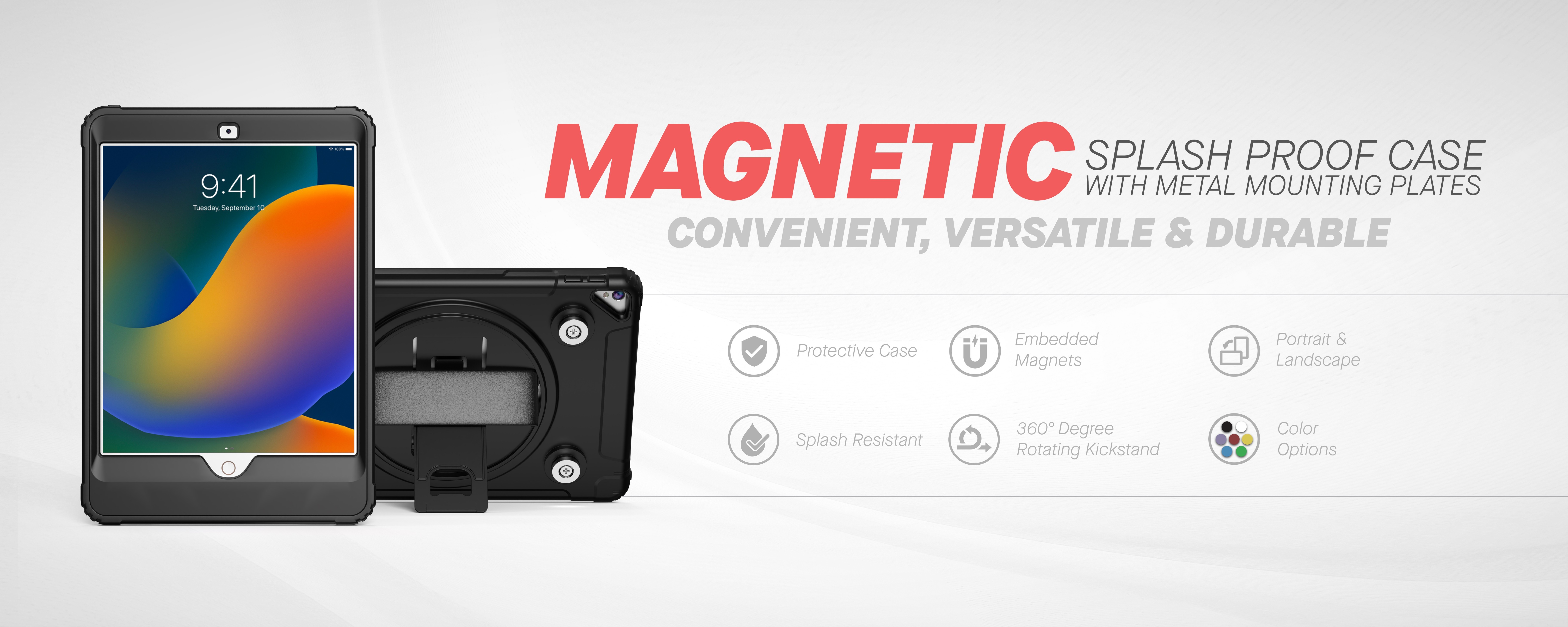 Magnets make it simple to transform to handheld use – then return to the case’s docking station.