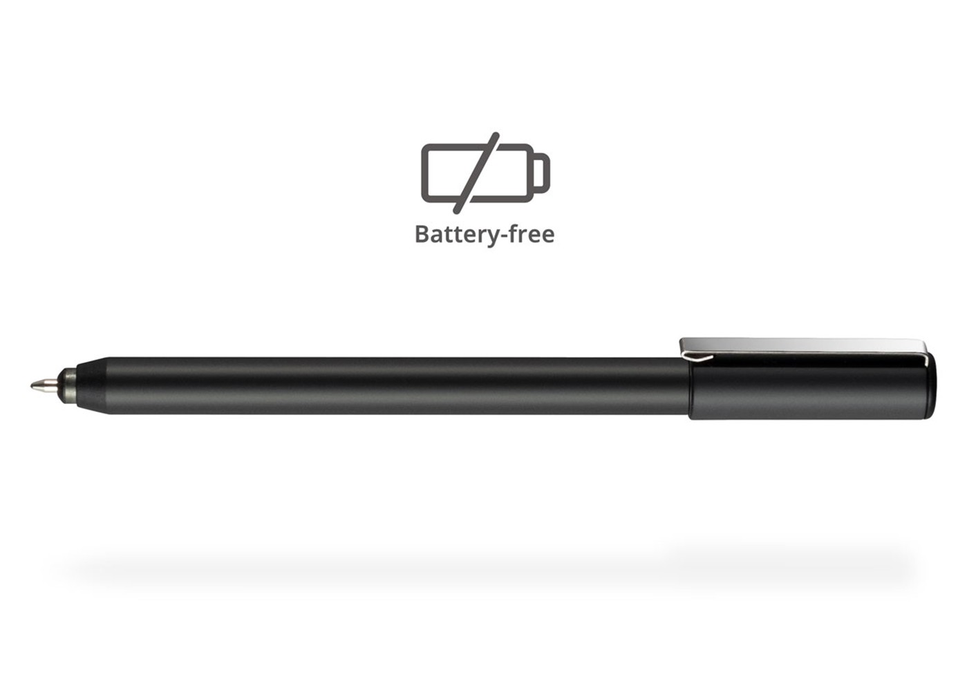 A patented battery-free ink pen is included and comes with a replaceable ink pen tip.