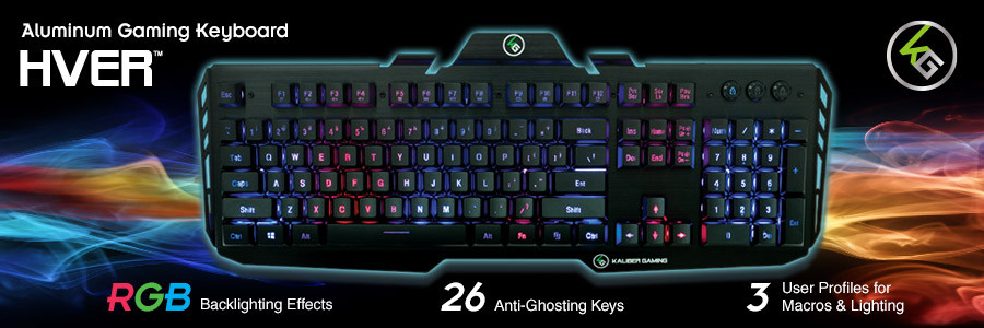Kaliber Gaming is excited to announce the HVER Aluminum Gaming Keyboard with RGB as the newest addition to the hugely successful HVER keyboard family. The HVER models get their name from the open frame design with elevated keys that appear to "hover" above the brushed aluminum chassis. Already known for good looks, HVER RGB builds on the success of the original models adding multi-zone RGB LED backlighting with multiple lighting patterns.