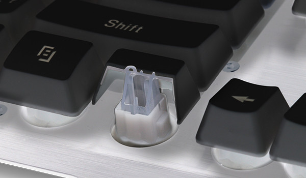 The HVER Aluminum Gaming Keyboard with RGB features an innovative key structure using low-friction POM plungers that do away with the mushiness typical to membrane designs. The result is a super-smooth, positive keystroke engagement, similar to the feel of a mechanical keyboard.