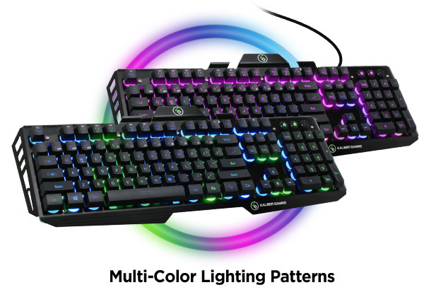 The HVER Aluminum Gaming Keyboard with RGB adds a vibrant display of color with multiple lighting patterns you can change without the need for special software.