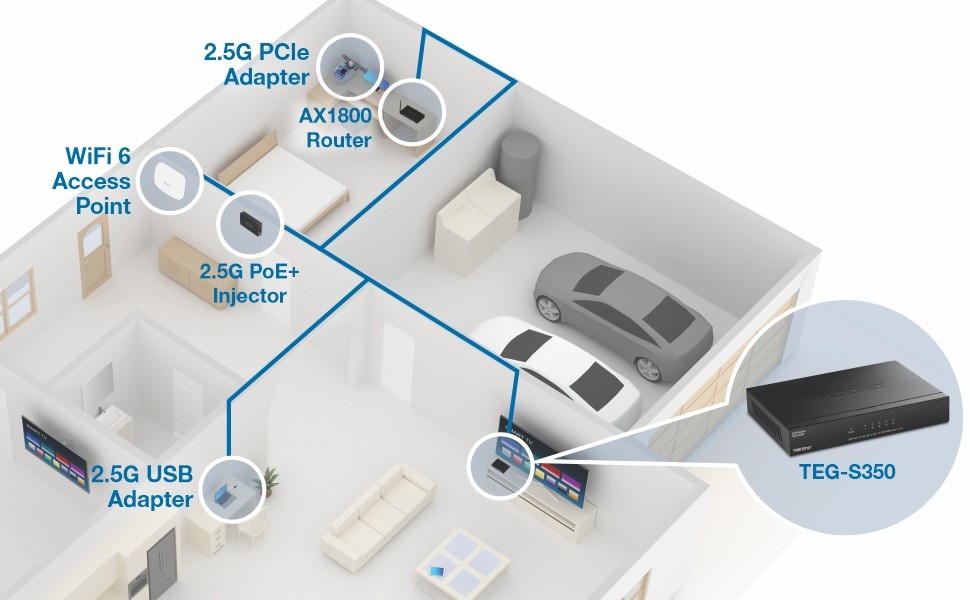 Expand your network’s bandwidth and reduce digital bottlenecks with TRENDnet’s Unmanaged 2.5G Switches. These 2.5G network switches come equipped with 2.5GBASE-T RJ-45 ports that provide ultra-fast speeds capable of up to 2.5Gbps over your existing Cat5e or better cabling. Each high-speed 2.5G switch features a durable metal enclosure and can be mounted to the wall for setup flexibility. The fanless design lowers energy consumption and eliminates operating noise. TRENDnet’s reliable 2.5G switches are cost-effective solutions to increase your network’s throughput.