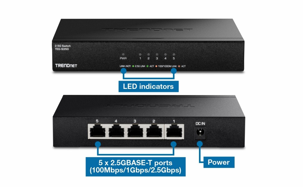 The 2.5G switch features a durable metal housing with a convenient wall mountable design for greater installation flexibility.