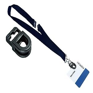 Includes black textile necklace with safety release that opens if necklace gets trapped or caught.