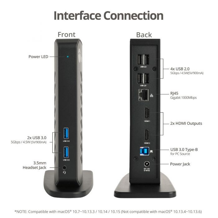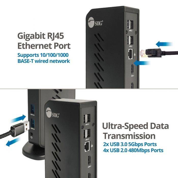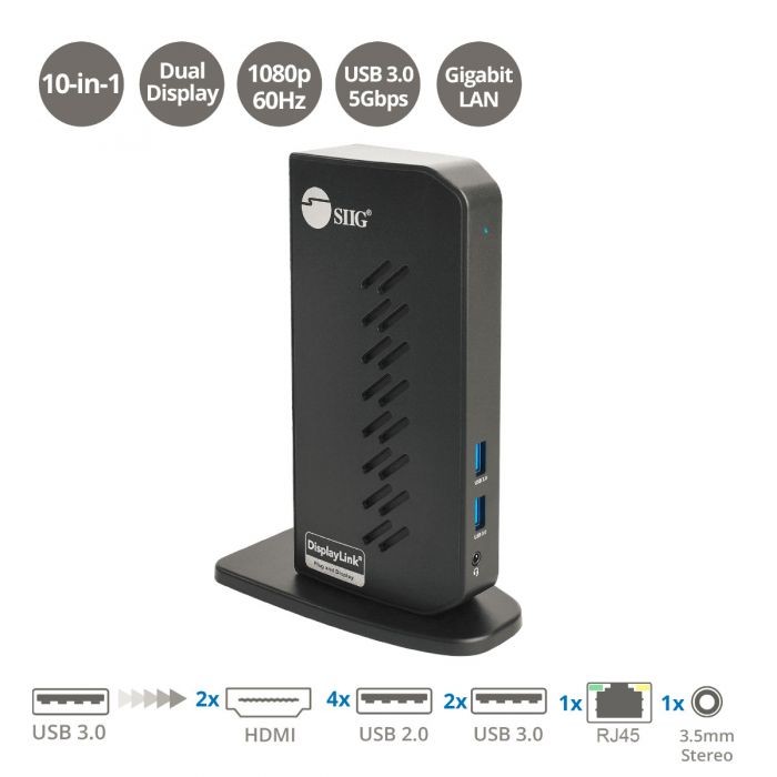 Transforms a single USB-A port of your computer into multiple connections with a DisplayLink USB graphics technology and provide dual HDMI displays making this docking station more powerful, productive, and high performance