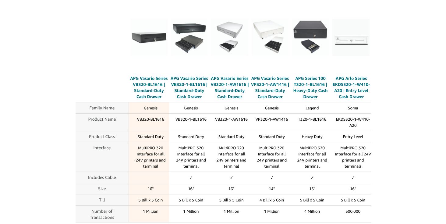 Equipped with APG’s MultiPRO 320 interface that is compatible with all 24V printer driven POS systems. Please note a connection cable is not included with purchase.