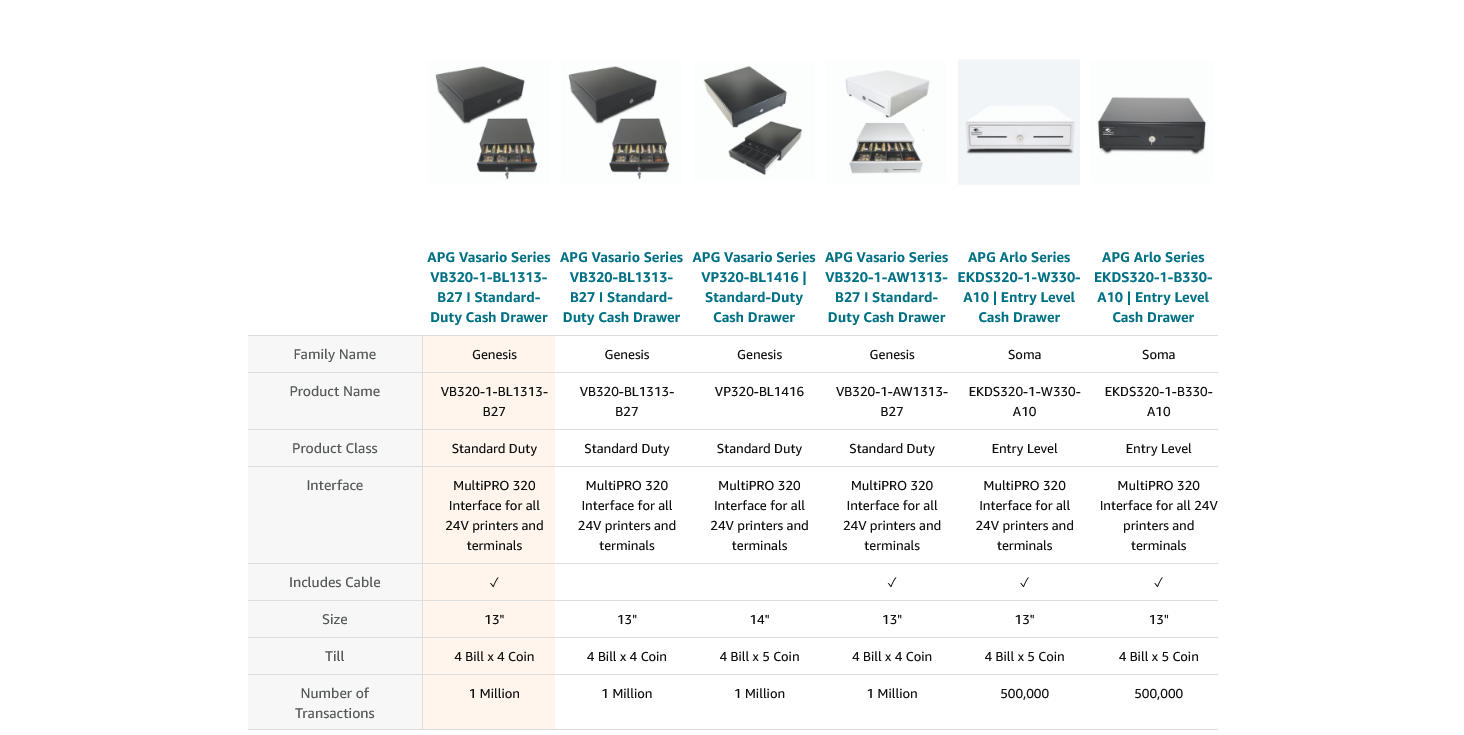 Equipped with APG’s MultiPRO 320 interface that is compatible with all 24V printer driven POS systems. Please note a connection cable is included with purchase.