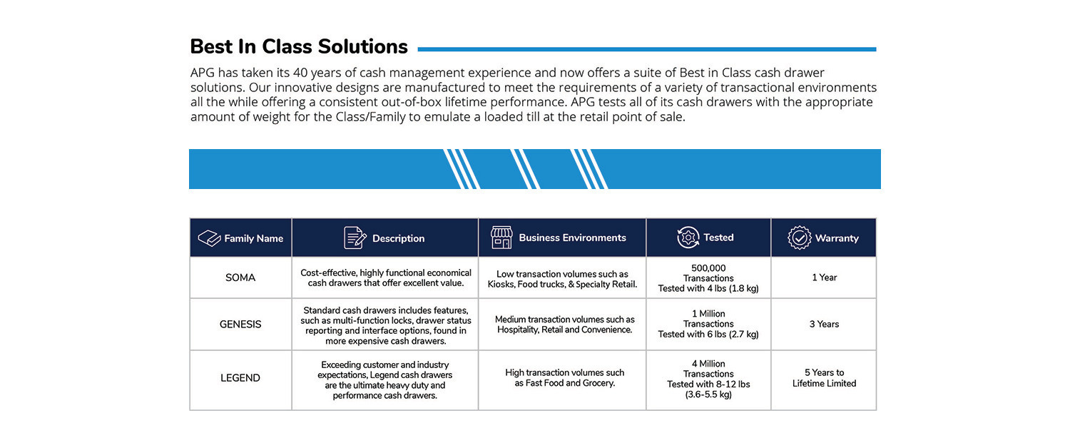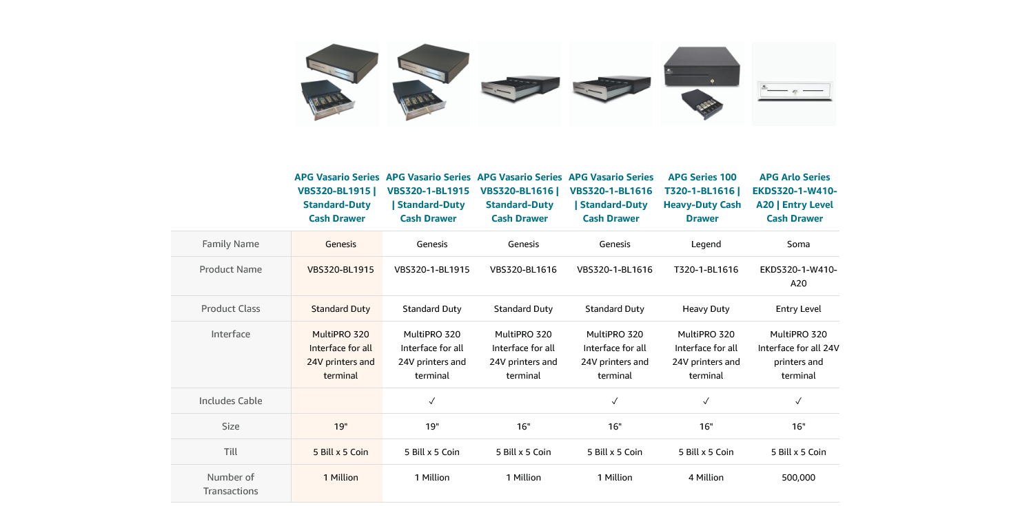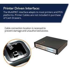 Equipped with APG’s MultiPRO 320 interface that is compatible with all 24V printer driven POS systems. Please note a connection cable is not included with purchase.